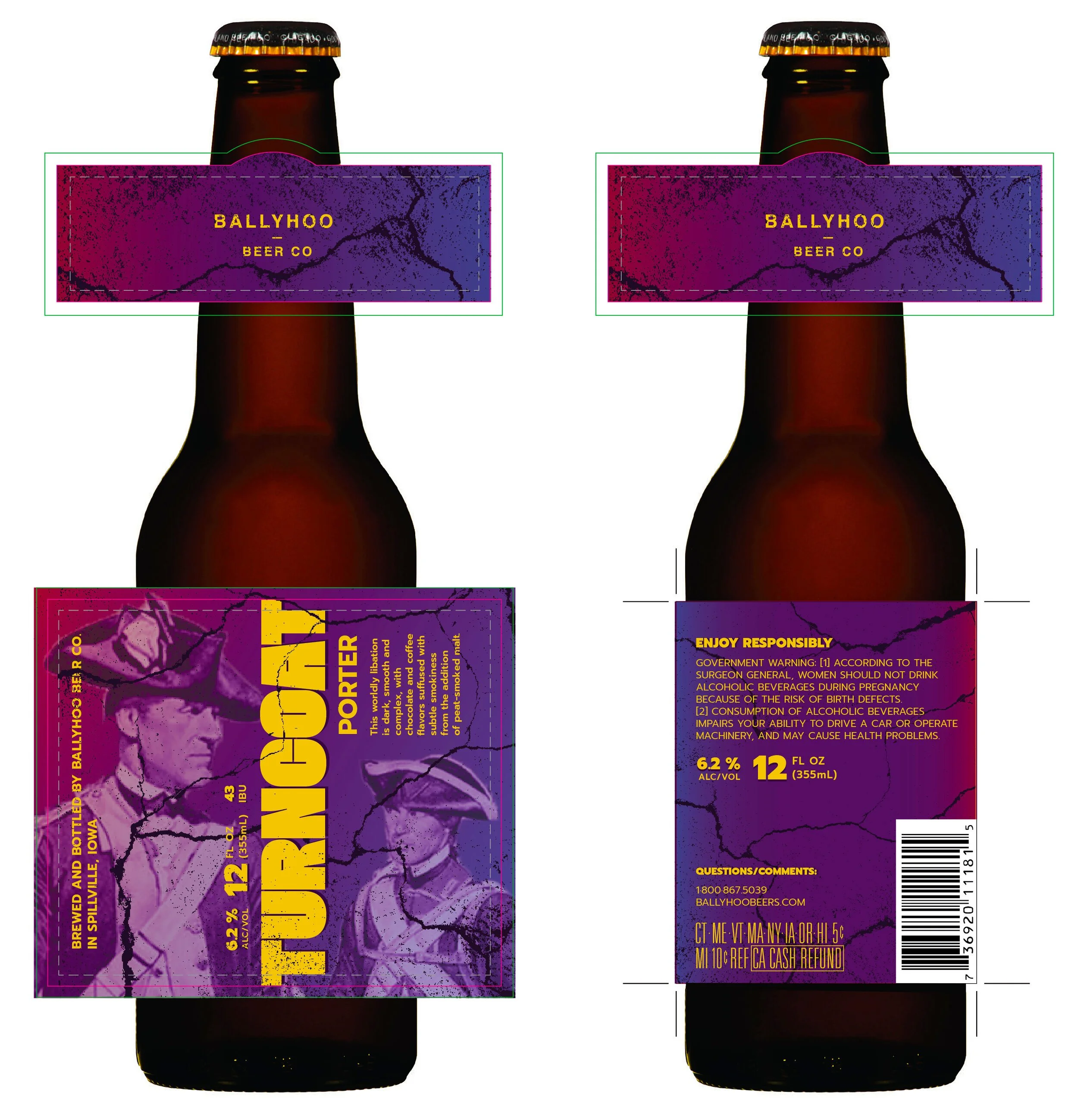 As a project in my publication class, I was tasked with researching and designing the labels for a porter beer named Turncoat.